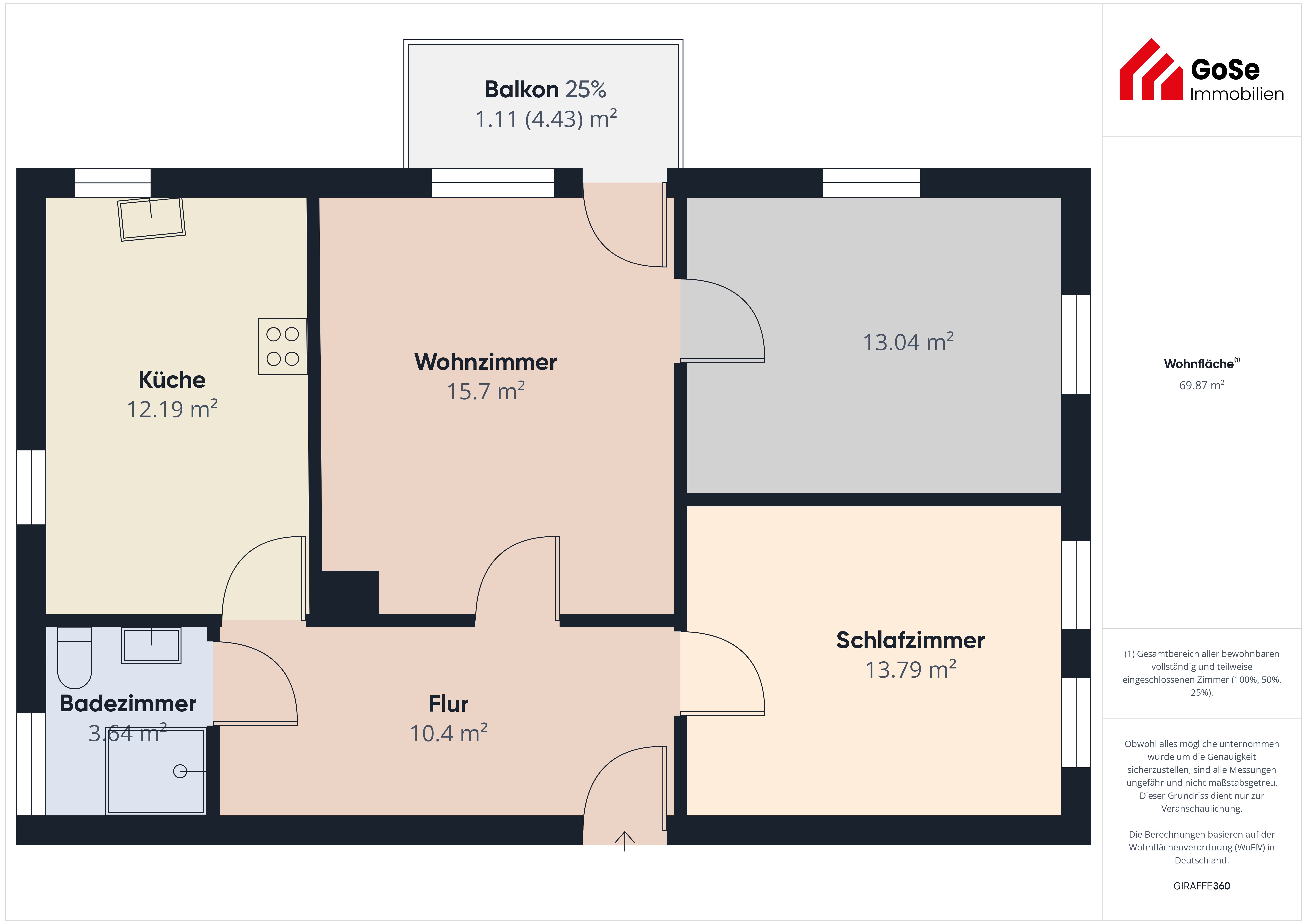 Mit drei Zimmern bietet die Wohnung ausreichend Platz für eine Familie, ein Paar oder eine Einzelperson. Die offenen Wohnräume schaffen ein luftiges und einladendes Ambiente, das von Tageslicht durchflutet wird und ein angenehmes Wohngefühl vermittelt.