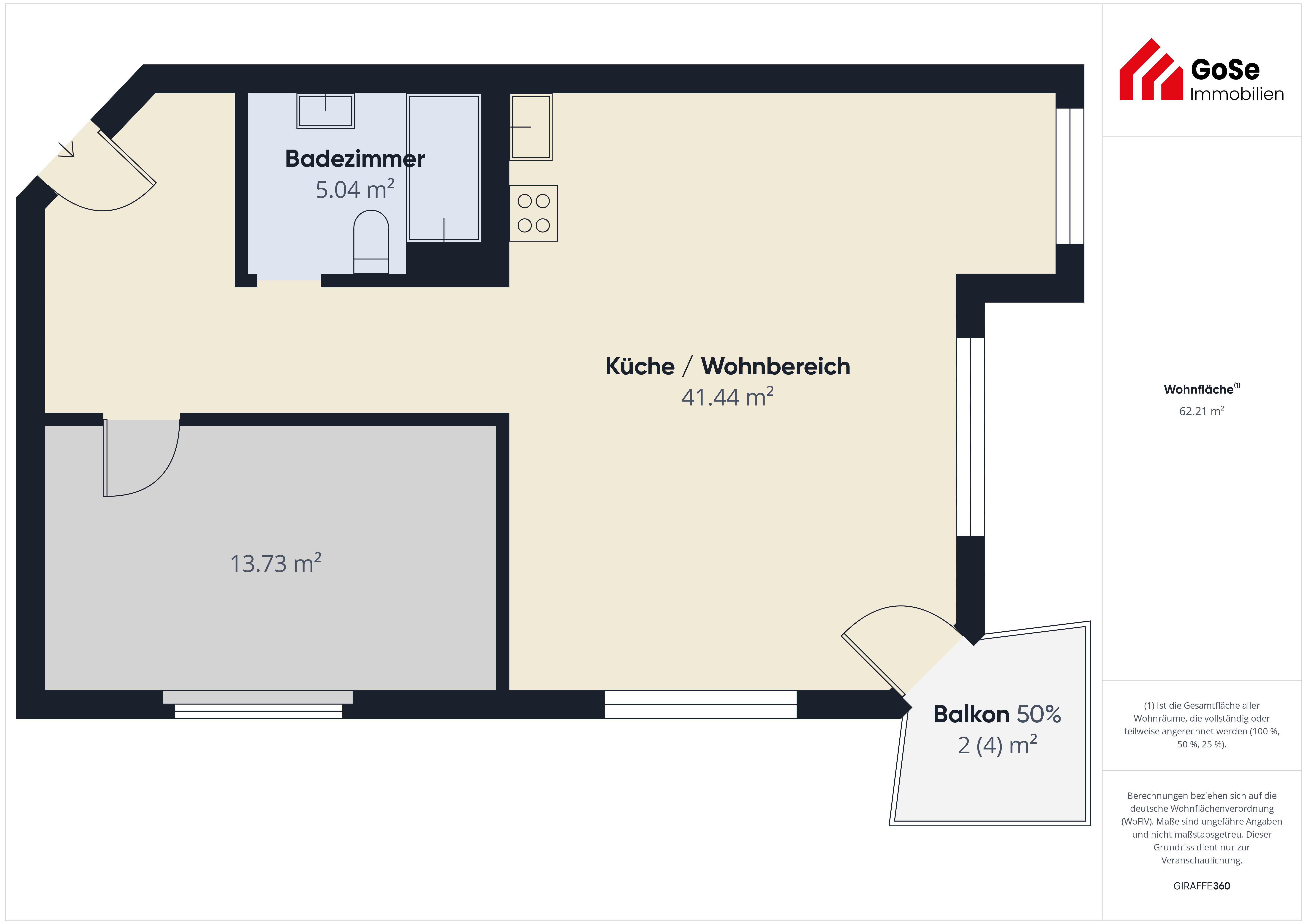 Die Wohnung wurde 1991 erbaut und verfügt über eine Gesamtwohnfläche von ca. 62,21 m².